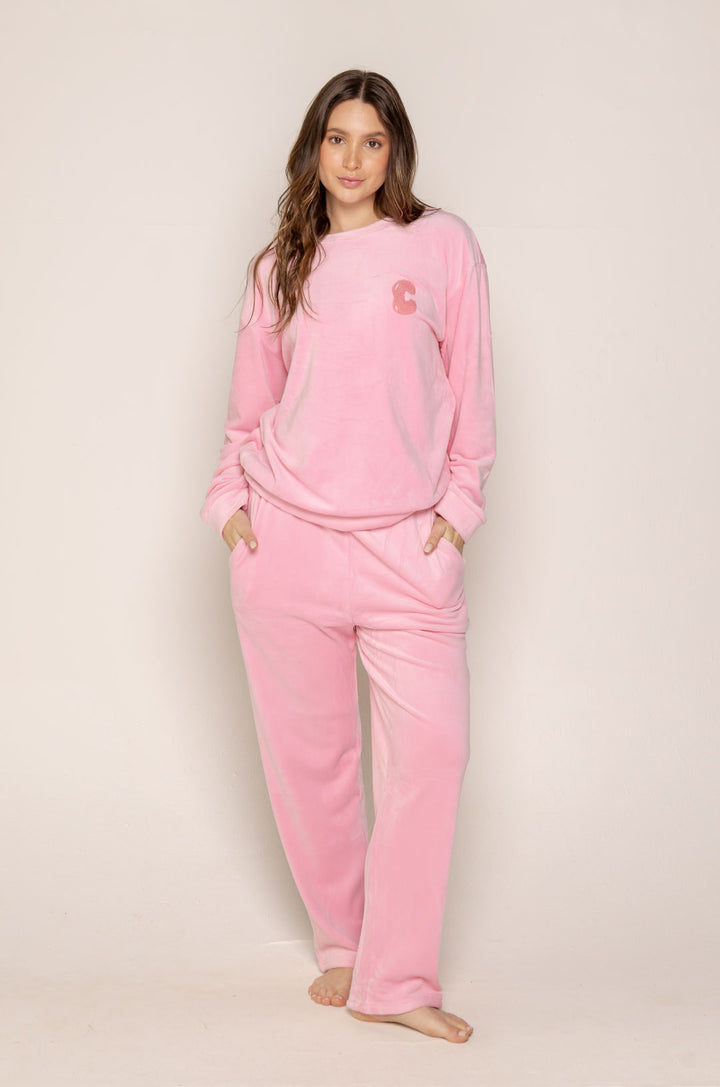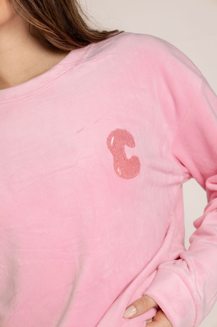 El diseño en rosa aporta un toque dulce y femenino, mientras que el detalle más especial se encuentra en el pecho: una letra “C” bordada, distintiva de Cozzzy, que añade personalidad y un acabado premium.